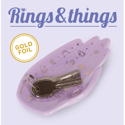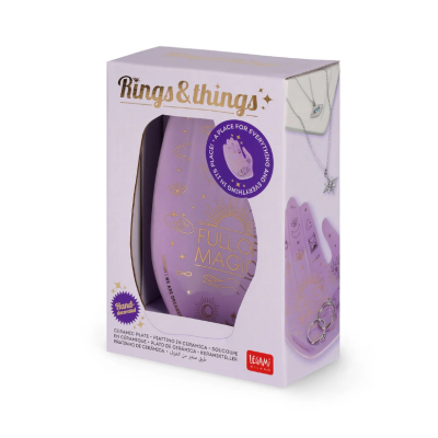 Se la prima cosa che fai quando torni a casa è toglierti anelli e orecchini e svuotare le tasche dalle monetine, è meglio sapere a chi affidarli fino a domani: il Piattino in Ceramica - Rings & Things Magic di Legami è lo svuotatasche più originale e particolare del web: i suoi dettagli rifiniti a mano e le decorazioni in foglia d’oro sono un tocco di classe perfetto per l’ingresso, il bagno o la camera da letto.
