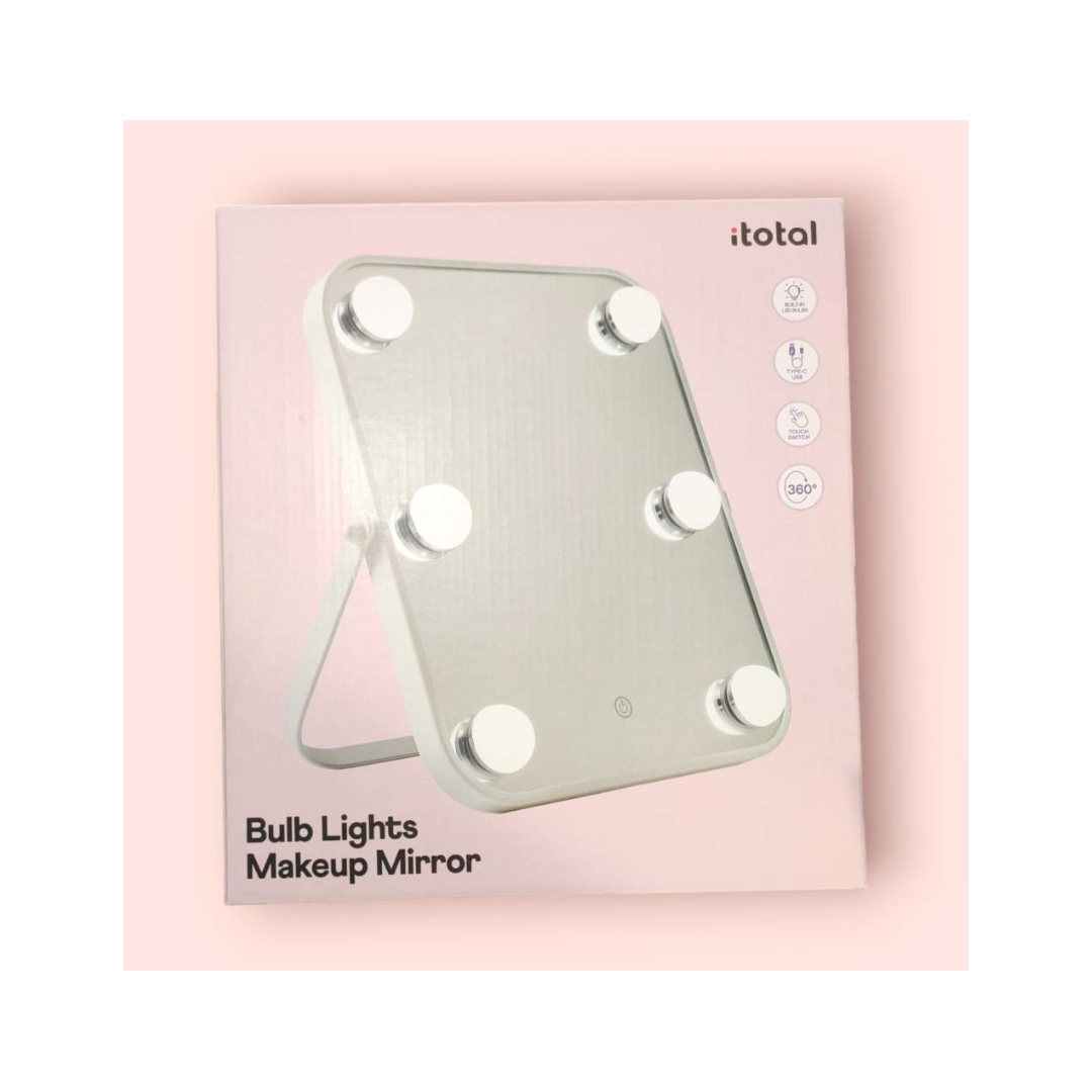 Questo specchio è dotato di 6 lampadine a luce bianca con intensità regolabile, per truccarti con la luce ideale in ogni momento. Realizzato in vetro ad alta definizione da 3 mm di spessore, offre immagini nitide e dettagliate, perfette per applicare il trucco con precisione.