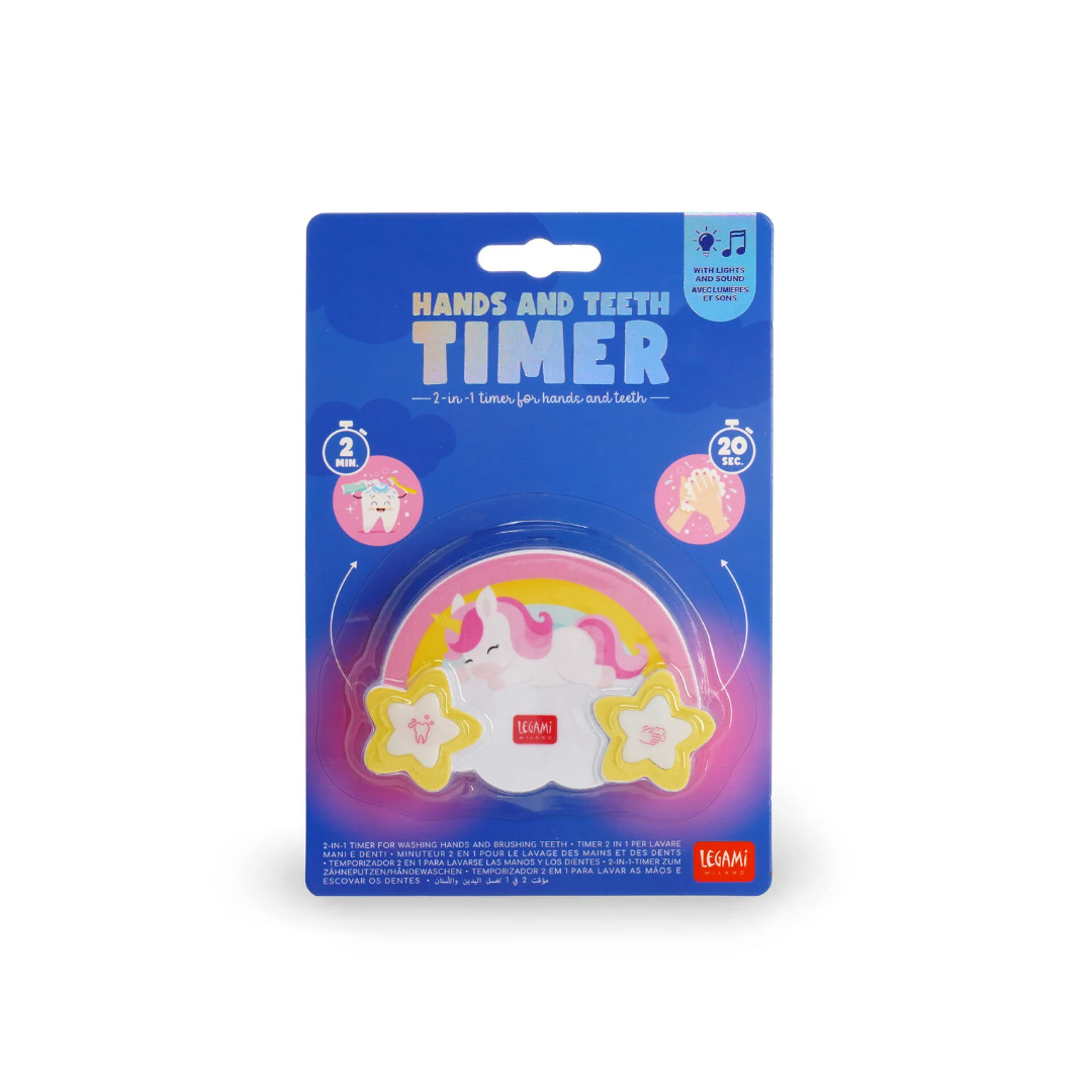 Parte il conto alla rovescia per mani pulite e denti splendenti! A tenere il tempo ci pensa il Timer 2 in 1 per Lavare Mani e Denti - Hands and Teeth Timer - Unicorn di Legami.