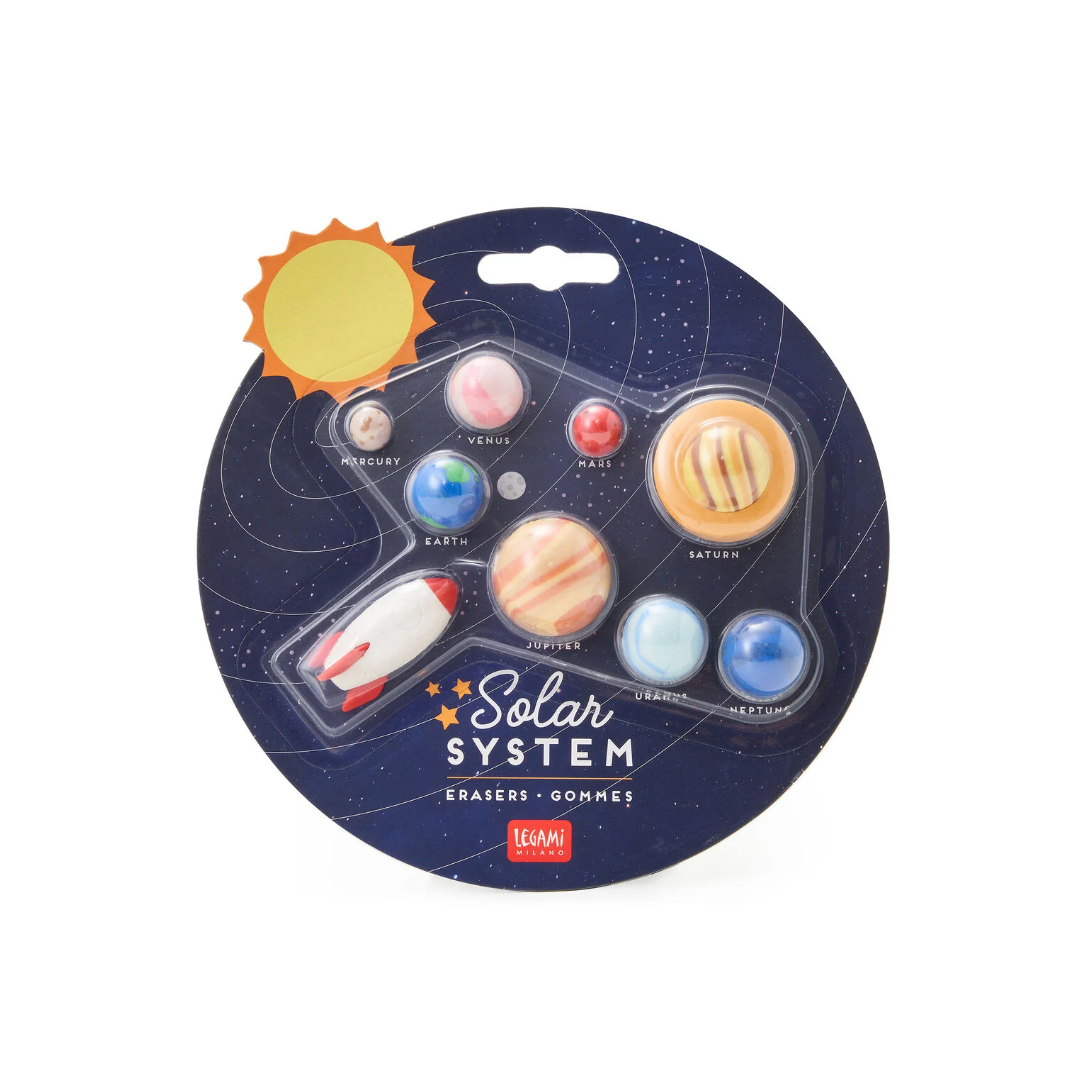 Equipaggio, prepararsi alla missione. Il set di 9 gomme Solar System di Legami è qui per cancellare galassie di errori, correggere refusi grandi come pianeti e fare in modo che ogni tuo scritto raggiunga le stelle.
