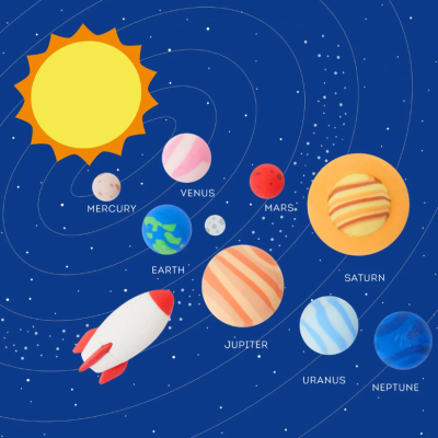 Set di 9 Gomme da Cancellare a tema Sistema Solare: 8 Pianeti e 1 Razzo per compiere una missione spaziale: esplorare le montagne di appunti e cancellare ogni errore dalla nostra galassia!