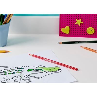 Pastello a sezione esagonale 6,8mm, verniciato nel colore della mina con spigoli argentati. Lunghezza 18cm. Mina 3,3mm di ottima qualità e resa, facile da temperare, con spazio per scrivere il nome direttamente sul pastello