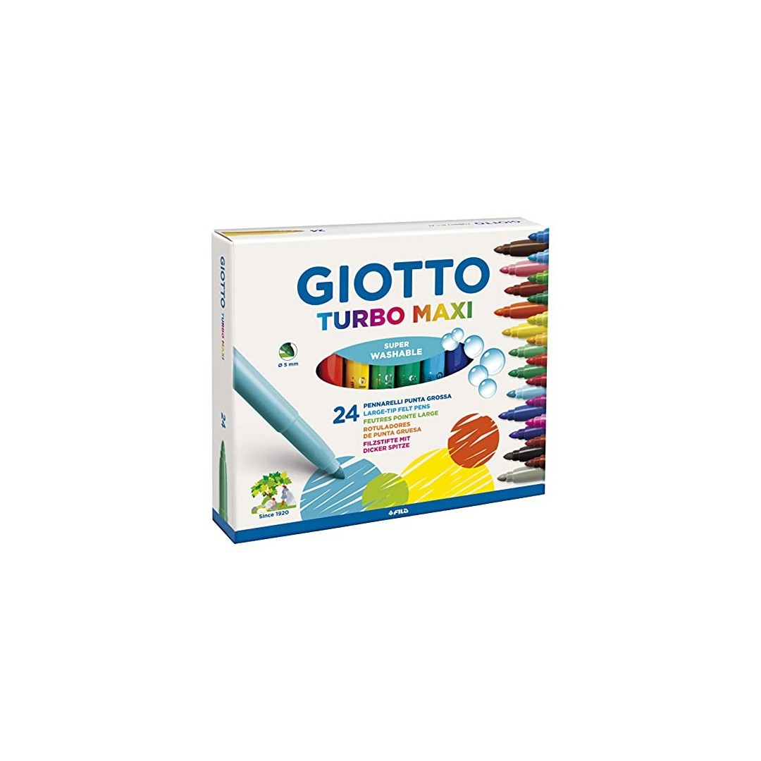 Pennarelli dai colori intensi e brillanti in formato maxi con cappuccio ventilato - tappo di sicurezza e pennino in fibra super-resistente di lunga durata - facili da impugnare - adatti anche ai più piccini perché dotati di inchiostro innocuo e lavabile da mani e tessuti