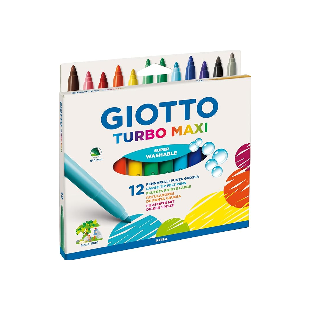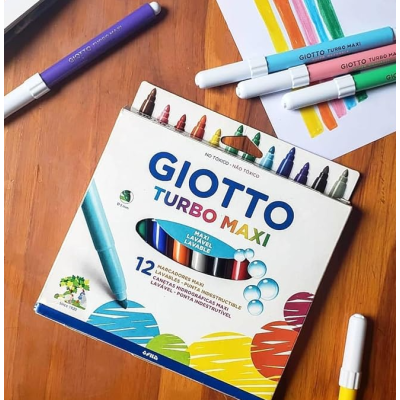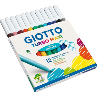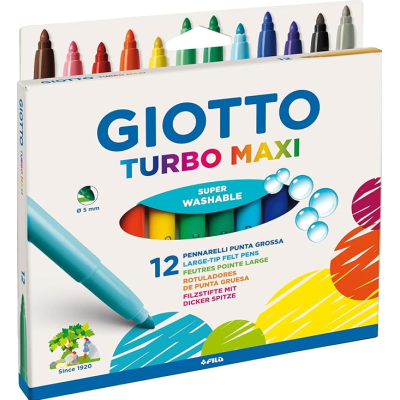 Facili da maneggiare e più ergonomici grazie al loro formato extra-large, i pennarelli Giotto Turbo Maxi per la scuola sono dotati di una punta da 5 mm molto resistente e bloccata per evitare che affondi. Con il tappo di sicurezza ventilato e l'inchiostro a base d'acqua, sono perfetti per i più piccoli in casa e sono anche facili da lavare. Lavabile sulla pelle con acqua e sapone e sui vestiti con un normale ciclo in lavatrice a 40 gradi. Disponibile in scatole da 12 e 24 pezzi.