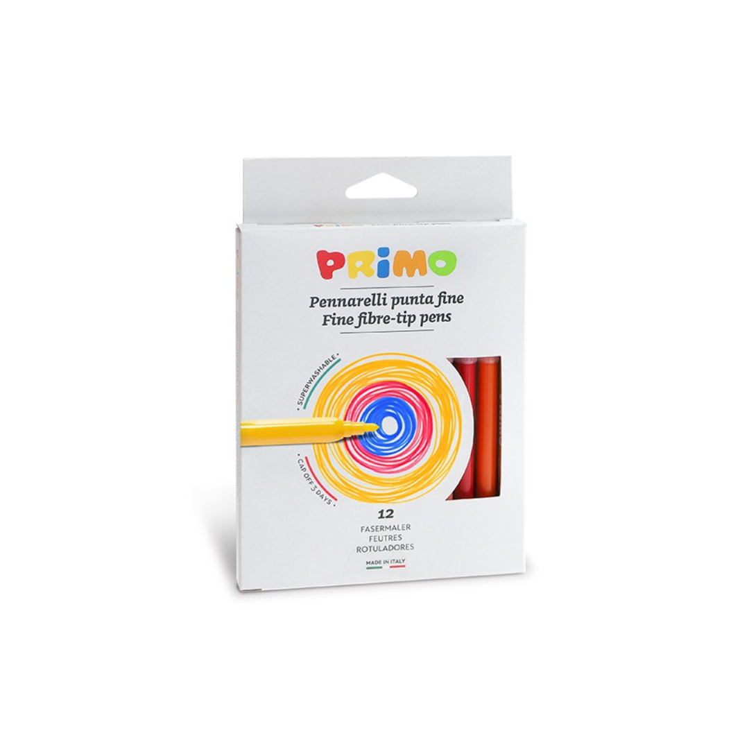 Pennarelli superlavabili, punta fine, in scatola di cartone.