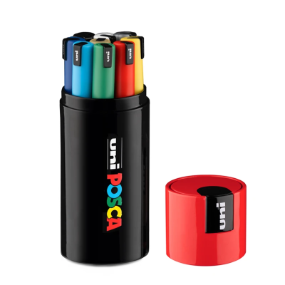 la poscapen gift box 9pz rosso di uni è un set di pennarelli a base d'acqua, ideale per colorare, decorare e personalizzare su diverse superfici come carta, legno, metallo, vetro e plastica. il set include 9 pennarelli di colori assortiti con punta fine, offrendo precisione e versatilità nel tratto. i pennarelli posca sono noti per la loro capacità di coprire bene, l'asciugatura rapida e la resistenza alla luce, rendendoli perfetti per artisti, illustratori e appassionati di fai-da-te. la confez