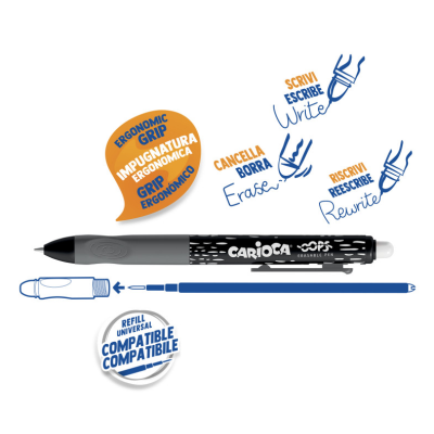 Carioca Oops, Penna cancellabile a scatto con inchiostro termosensibile, colore nero