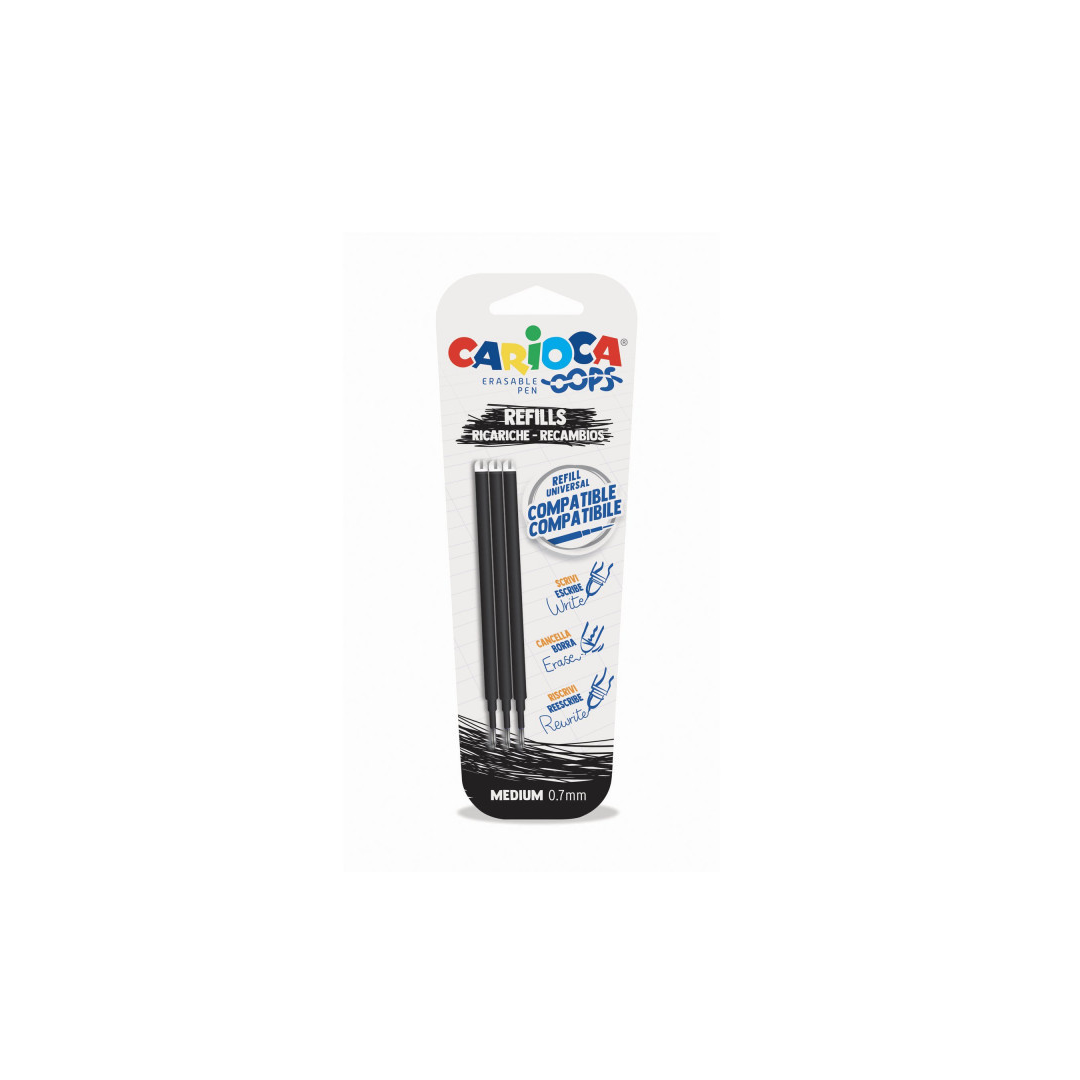 Carioca - Ricariche Penna Cancellabile Oops - 3 PZ Inchiostro nero