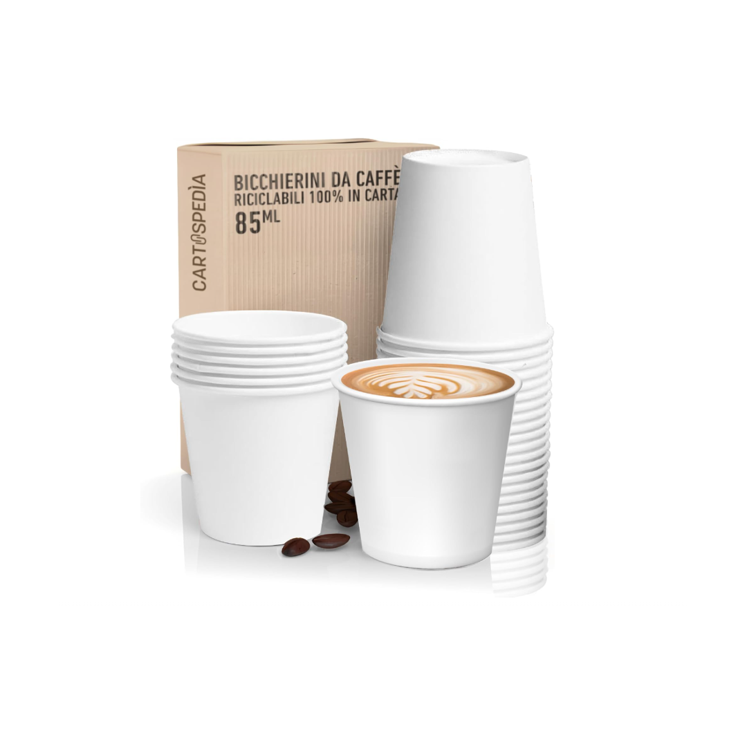 icchierini caffè Cartospedìa in carta riciclabile: la scelta intelligente per chi desidera praticità senza rinunciare al rispetto per l’ambiente. Questi bicchierini caffè carta da 85 ml sono ideali per espresso, ristretto o macchiato, perfetti per casa, ufficio, bar o eventi.