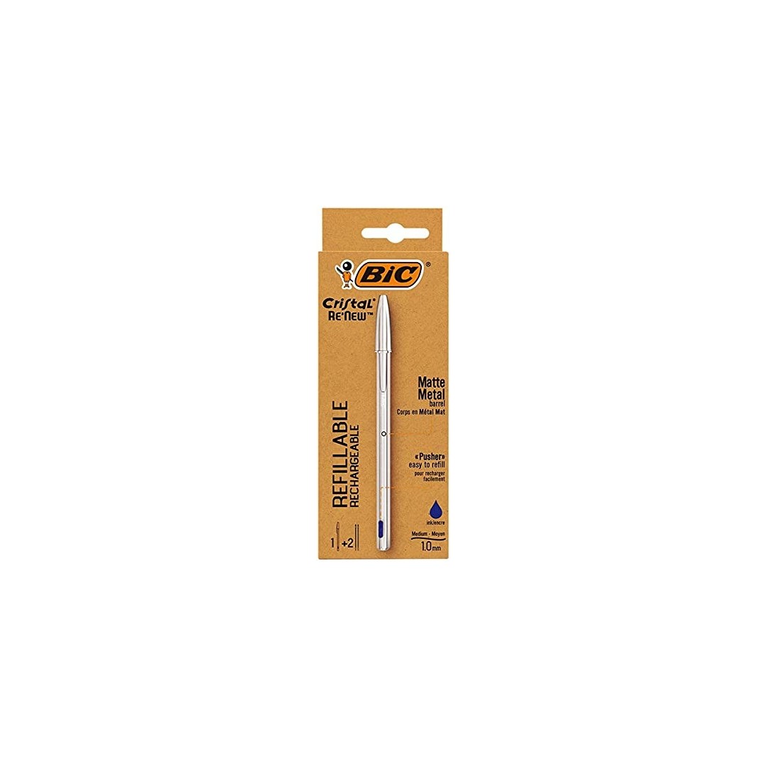 L”iconica penna a sfera Cristal in una versione unica dal fusto metallico. Un design sostenibile perché ricaricabile con un pratico pulsante per sostituire i refill (2 refill inclusi nella confezione). Cappuccio in plastica riciclata al 100%. Ogni refill scrive in media 3 km. Punta da 1 mm.