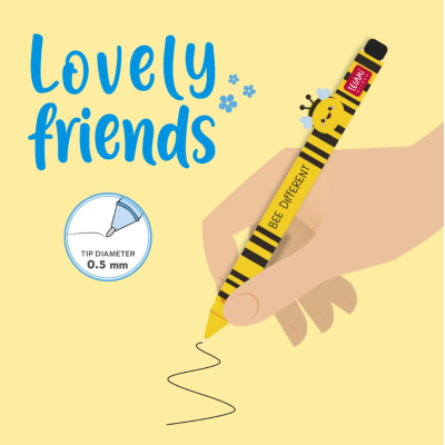Con la Penna Gel con Bee decorativo della famiglia Lovely Friends di Legami, sei sempre in ottima compagnia: non solo rende ogni giornata super cute, ma si prende cura della tua penna quando la appoggi, evitando che rotoli.