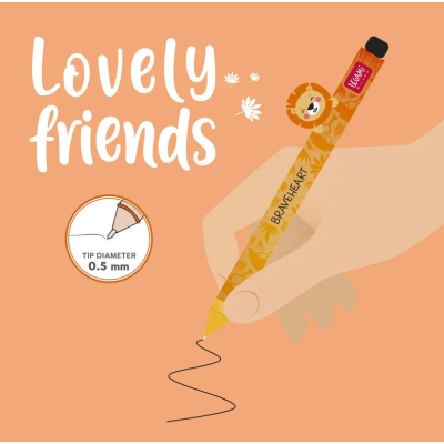 Con la Penna Gel con Lion decorativo della famiglia Lovely Friends di Legami, sei sempre in ottima compagnia: non solo rende ogni giornata super cute, ma si prende cura della tua penna quando la appoggi, evitando che rotoli.