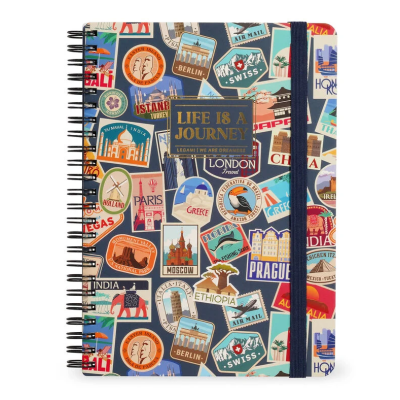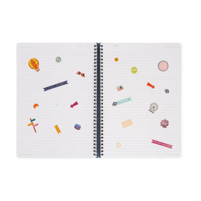Come dice una famosa canzone americana: "se ti piace, mettici un anello". E a noi il Quaderno Spiralato a Righe Maxi a tema Travel Stickers di Legami piace così tanto che di anelli ne abbiamo messi tantissimi, su tutta la rilegatura. È il modo più comodo per accogliere i tuoi pensieri, gli appunti, gli adesivi e gli sticker e per essere sempre pronti a girare pagina verso un nuovo capitolo!