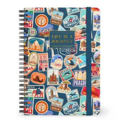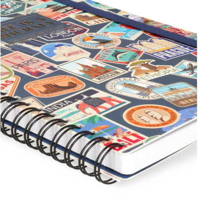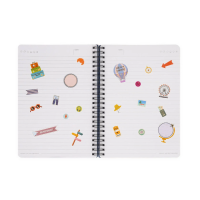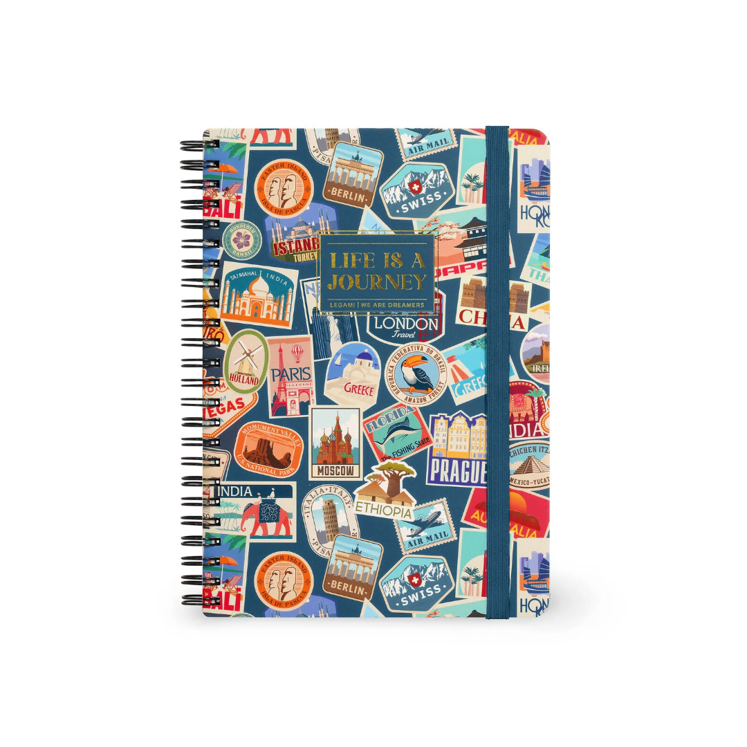 Come dice una famosa canzone americana: "se ti piace, mettici un anello". E a noi il Quaderno Spiralato Large a Righe a tema Travel Stickers di Legami piace così tanto che di anelli ne abbiamo messi tantissimi, su tutta la rilegatura. È il modo più comodo per accogliere i tuoi pensieri, gli appunti, gli adesivi e gli sticker e per essere sempre pronti a girare pagina verso un nuovo capitolo!