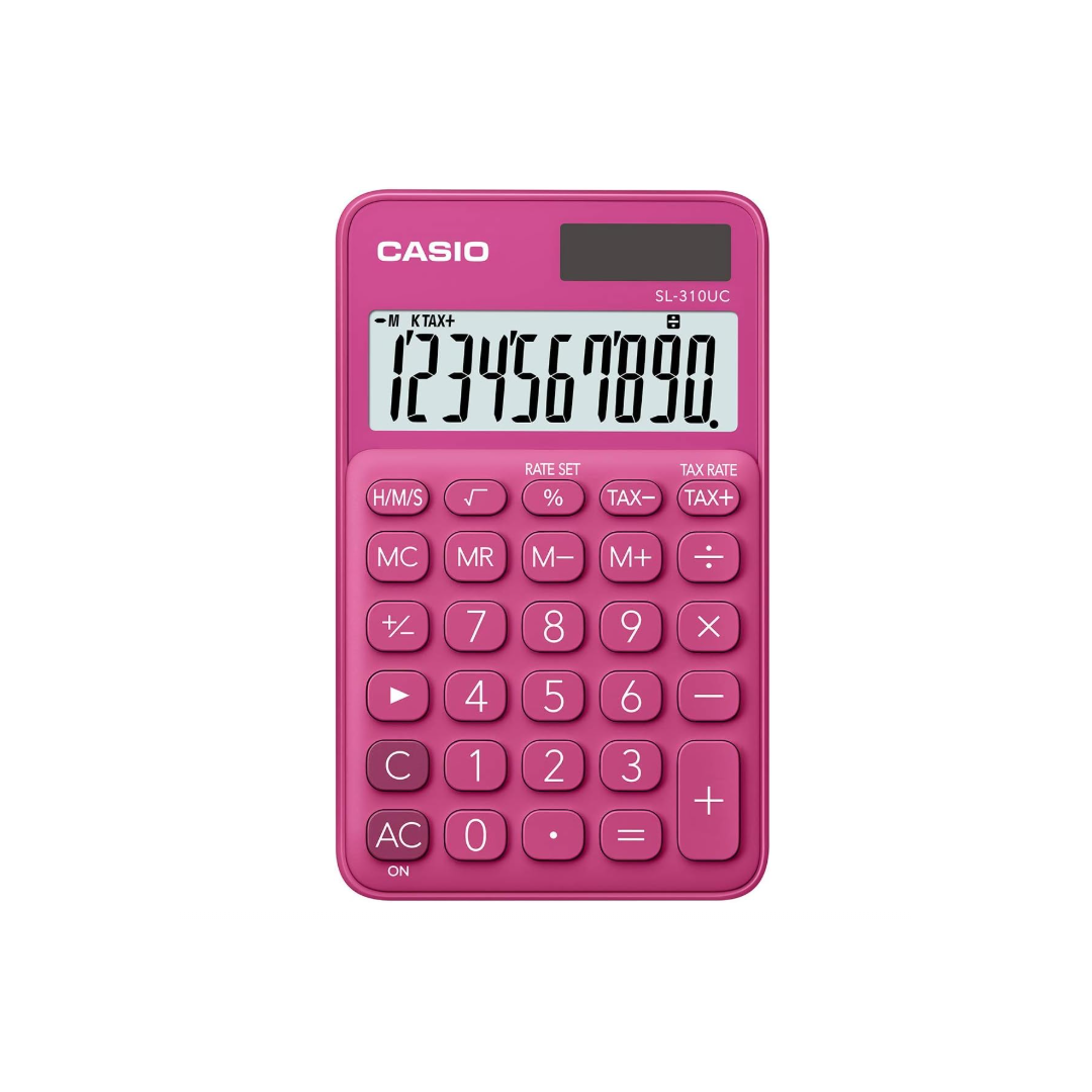 "Calcolatrice tascabile con display a 10 cifre e con possibilità di effettuare diversi calcoli come: calcolo IVA, calcolo del tempo, calcolo profitto e calcolo della percentuale ed è dotata di radice quadrata, 3 tasti memoria, tasto cambio segno (+/-), tasto cancella ultima cifra.