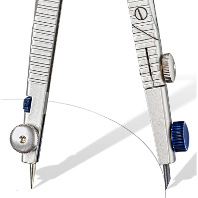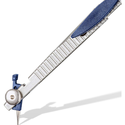 Compasso di precisione tipo balaustrone, con vite centrale e meccanismo di regolazione rapida e precisa