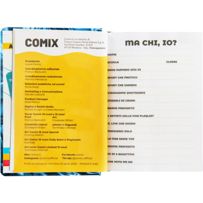 DIARIO COMIX 16 MESI: questa diario Comix 16 mesi, da settembre 2025 a dicembre 2026, è ideale per le scuole medie e superiori. TASCABILE: grazie alle dimensioni ridotte (11x15.3h cm) è comodo da portare sempre con te, per prendere appunti e pianificare le tue giornate scolastiche. MATERIALE DI QUALITÀ: realizzato con materiali resistenti e durevoli, per durare tutto l'anno scolastico.
