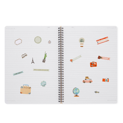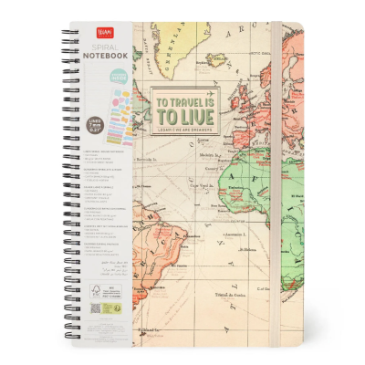 Come dice una famosa canzone americana: "se ti piace, mettici un anello". E a noi il Quaderno Spiralato Maxi a Righe a tema Travel di Legami piace così tanto che di anelli ne abbiamo messi tantissimi, su tutta la rilegatura. È il modo più comodo per accogliere i tuoi pensieri, gli appunti, gli adesivi e gli sticker e per essere sempre pronti a girare pagina verso un nuovo capitolo!
