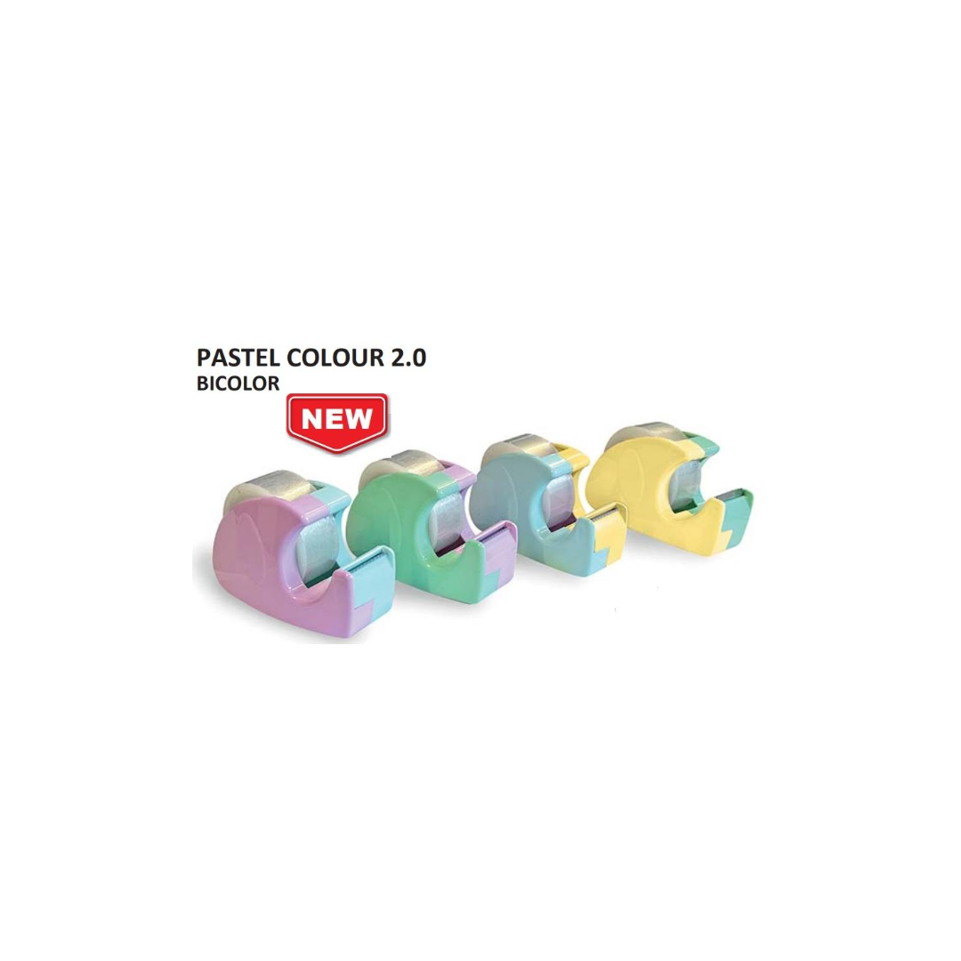 PORTA NASTRO ADESIVO MT 33 X MM 19. LAMA TAGLIANASTRO IN ACCIAIO. ROTOLO DI NASTRO ADESIVO DI ALTA QUALITÀ INCLUSO. colore pastello random