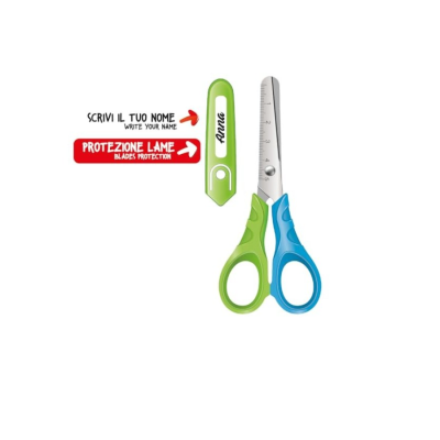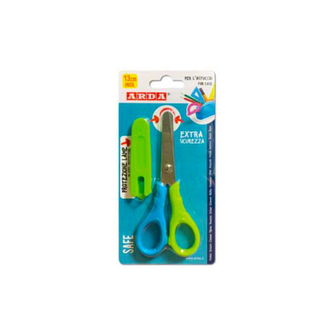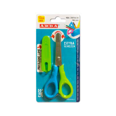 Forbici Safe - Arda Cappuccio per protezione lame Apposito spazio per scrivere il proprio nome Lama inox centimetrata In blister 13 cm.
