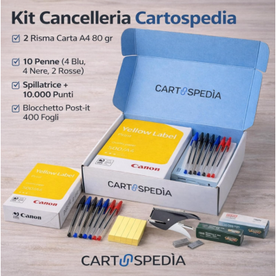 Se cerchi una soluzione semplice per avere tutto il necessario sempre a portata di mano, questo kit cancelleria ufficio completo è la scelta ideale. Pensato per ufficio, scuola e smart working, riunisce in un unico set strumenti essenziali per stampare, scrivere, archiviare e organizzare senza interruzioni. Perfetto per chi vuole risparmiare tempo ed evitare acquisti separati, mantenendo ordine e produttività ogni giorno.