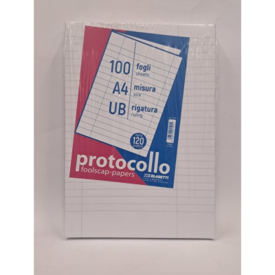 Fogli protocollo Blasetti formato A4 in carta da 120 g con rigatura uso bollo. Risma da 100 fogli. Senza margini.