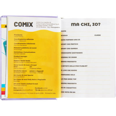 DIARIO COMIX 16 MESI: questa diario Comix 16 mesi, da settembre 2025 a dicembre 2026, è ideale per le scuole medie e superiori. TASCABILE: grazie alle dimensioni ridotte (11x15.3h cm) è comodo da portare sempre con te, per prendere appunti e pianificare le tue giornate scolastiche. MATERIALE DI QUALITÀ: realizzato con materiali resistenti e durevoli, per durare tutto l'anno scolastico.