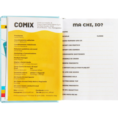 DIARIO COMIX 16 MESI: questa diario Comix 16 mesi, da settembre 2025 a dicembre 2026, è ideale per le scuole medie e superiori. TASCABILE: grazie alle dimensioni ridotte (11x15.3h cm) è comodo da portare sempre con te, per prendere appunti e pianificare le tue giornate scolastiche. MATERIALE DI QUALITÀ: realizzato con materiali resistenti e durevoli, per durare tutto l'anno scolastico.