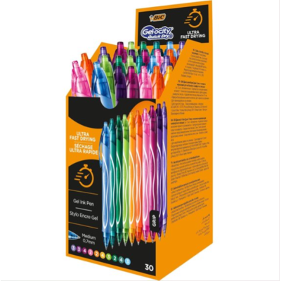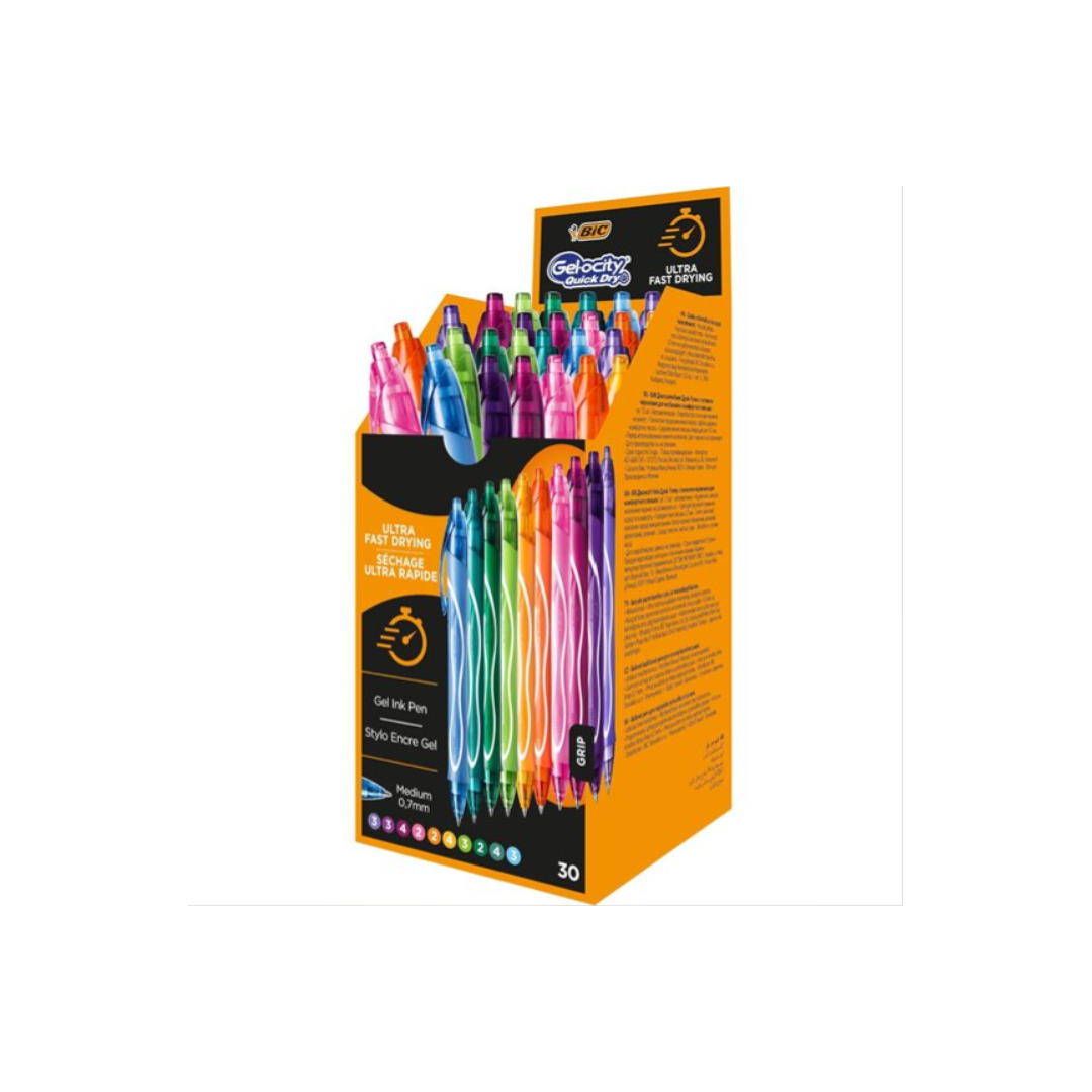 Quick Dry è la nuova versione della penna a inchiostro gel BIC Gelocity. Non solo è dotata dello stesso inchiostro luminoso, ma l’inchiostro gel si asciuga a un’incredibile velocità per evitare sbavature sulla carta. Il fusto totalmente gommato è progettato per una facile impugnatura per offrirti il massimo comfort nella scrittura. Questa penna inchiostro gel presenta una punta media di 0,7 mm. Confezione assortita con 10 colori (2 verde, 3 verde chiaro, 4 ottanio, 4 prugna, 3 viola scuro, 3 viola chiaro, 2 rosa, 3 turchese, 2 arancione, 4 arancione chiaro).