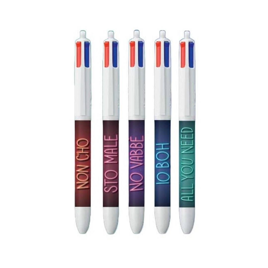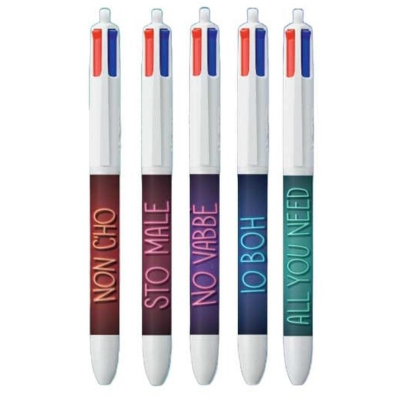 Penna a sfera multi‐ink in edizione speciale “Webboh”, decorata con frasi ironiche rivolte alla Generazione Z. Unisce humour e praticità grazie a quattro inchiostri vivaci in un solo corpo, per scrivere e prendere appunti con stile.